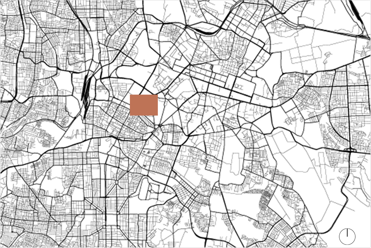 Located at the core of the city in the historic neighborhood. The campus, highlighted area of detail.